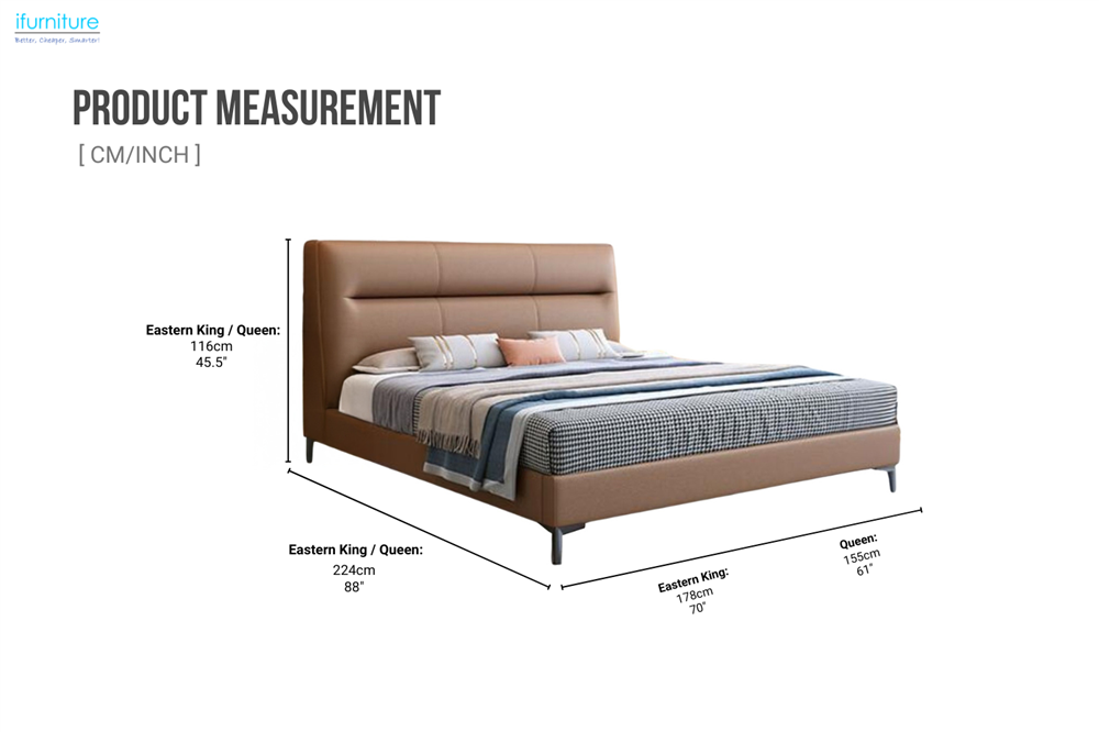 (Out of Stock) CUBA Genuine Leather Bed Frame in Queen/Eastern King Size (Brown)