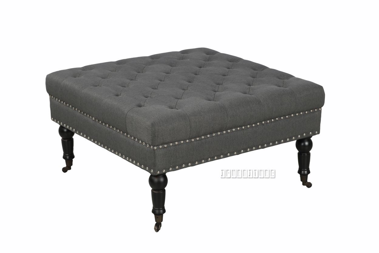 Our large Dolfer square fabric ottoman can bring a splash of color to any room. It's padded and cushioned, with deep buttons on the seats.
