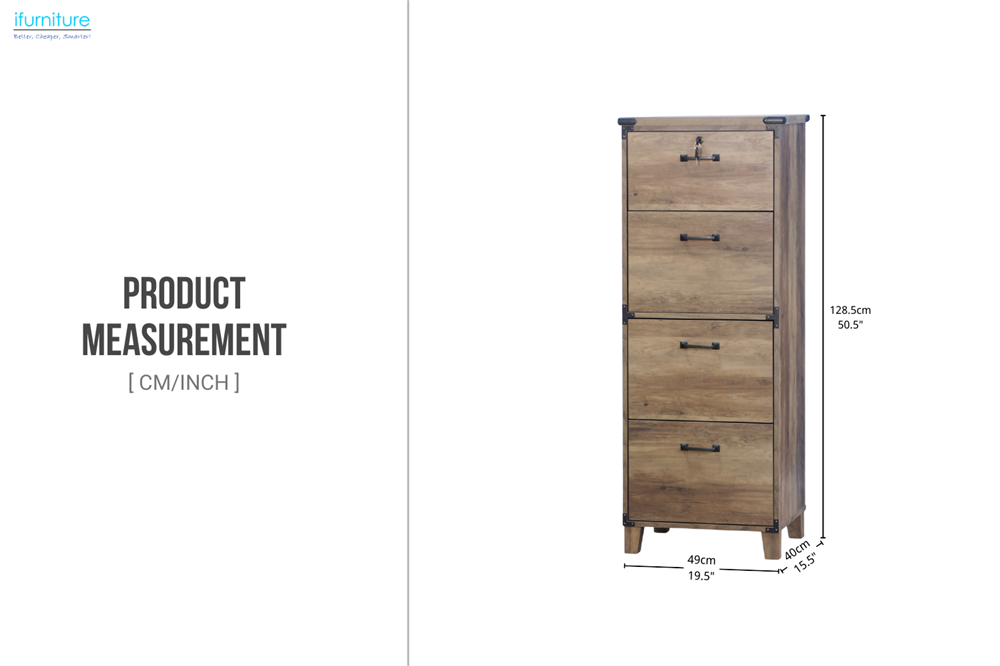 The ELBIN 4-Drawer Chest combines industrial style and practical storage. With four spacious drawers, it offers ample room for organising documents, office supplies, and personal items. Designed with a sleek engineered wood finish, this piece brings a touch of sophistication to your office or living space.