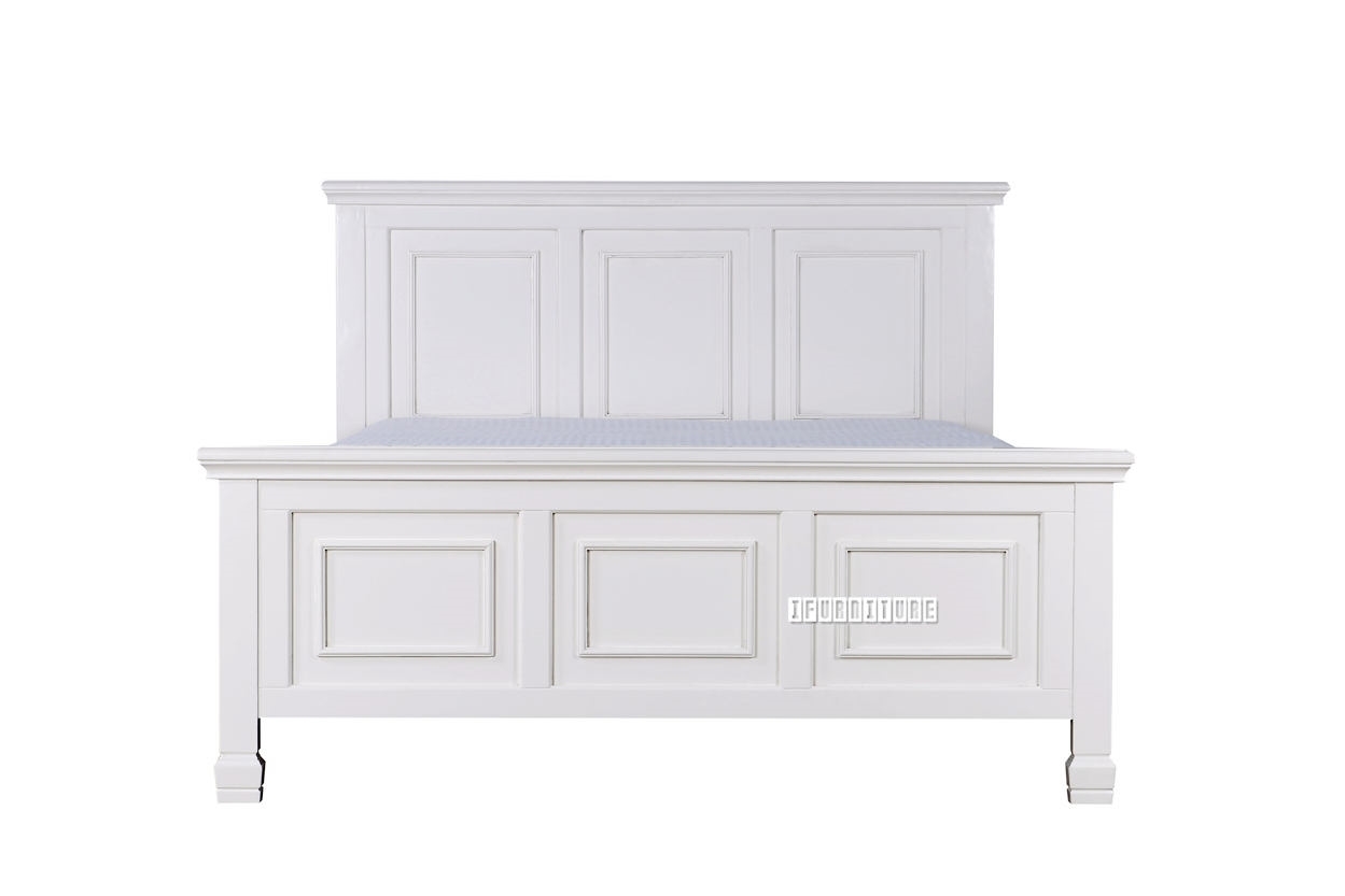 The ELIZABETH bed frame imparts both long-lasting comfort, & timeless beauty with its peaceful matt white finish; its classic panels and mouldings accent your room.