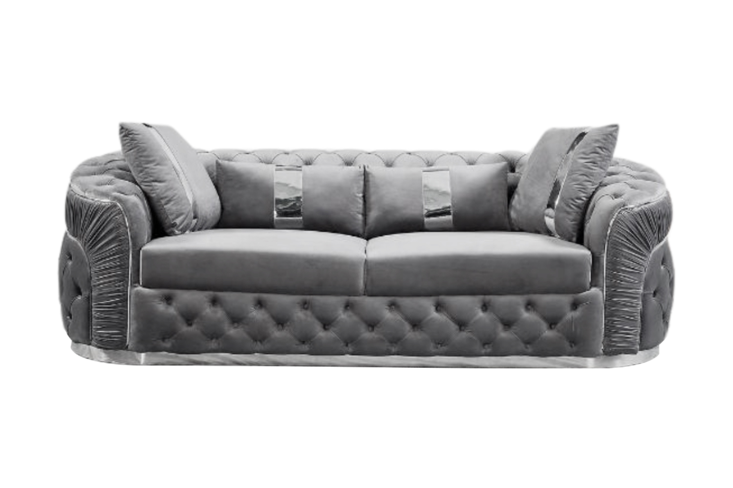 Elevate your home to the pinnacle of luxury and style with our exquisite 3-piece velvet chesterfield sofa range. Crafted to perfection, this collection includes a sofa, loveseat, and armchair, all featuring a sturdy metal frame that infuses a touch of opulence and sophistication into your living space. Its sumptuous velvet upholstery and timeless chesterfield design create an unrivaled seating solution for your home. With its versatile beige color, it seamlessly complements any interior decor. Elevate your living space with this exquisite range and embrace a new level of comfort and elegance.