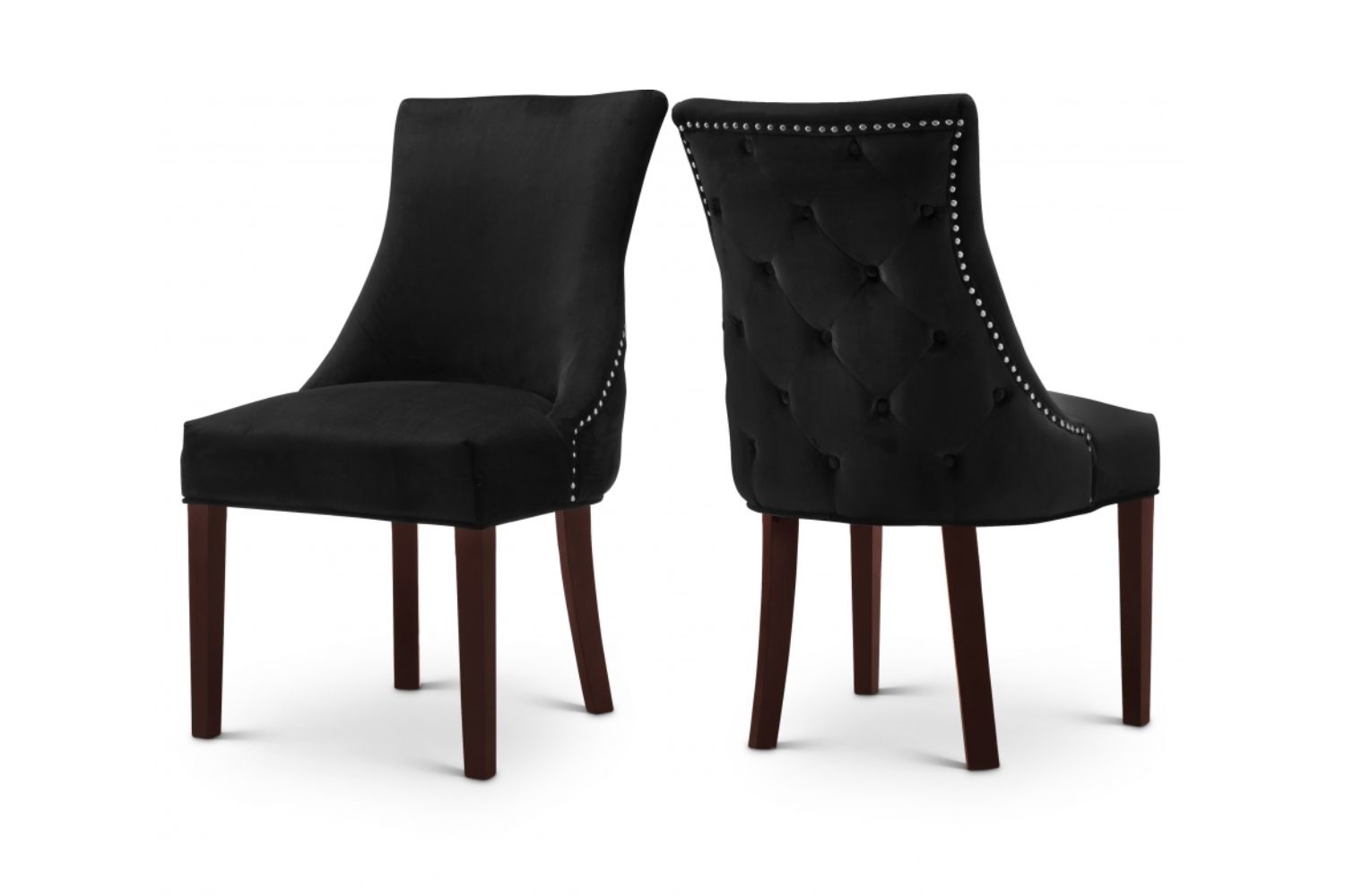 The FRANKLIN Dining Chair exudes timeless elegance with its solid rubber wood legs in a rich dark brown hue, beautifully contrasting against the deep black velvet fabric. The luxurious velvet not only adds a touch of opulence but also complements the plush tufted back details, enhancing both style and comfort. Crafted with precision, these chairs provide a perfect blend of sophistication and relaxation, making every dining experience a truly luxurious one. The fusion of the tufted accents and the interplay of textures between the velvet and wood showcases a harmonious design that effortlessly elevates any dining space. With the FRANKLIN Dining Chair, you invite both aesthetics and comfort to the table.