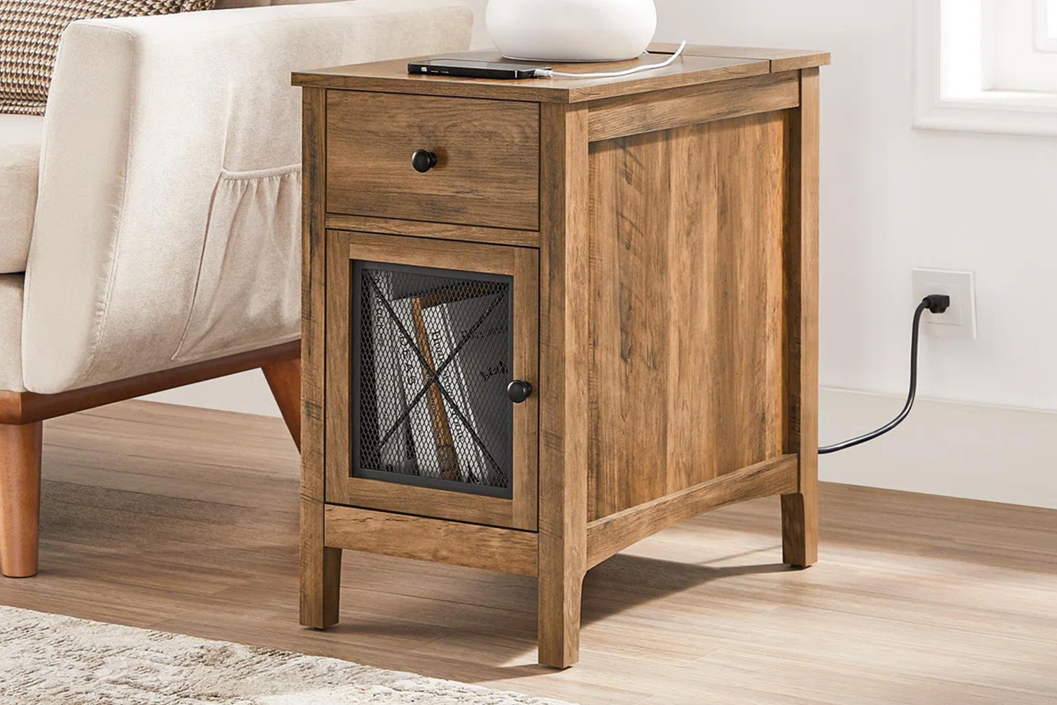 Add function and charm to any room with the ARROYO 3-Tier Side Table. Featuring a rustic oak colour finish and a space-efficient, narrow profile, this table easily fits beside sofas, armchairs, or beds. The two open lower shelves provide practical storage for books, decor, or daily essentials, while the top surface is perfect for your coffee, lamp, or plant. Whether in the living room, bedroom, or office, the ARROYO table delivers both style and convenience. Its minimalist silhouette and slightly angled legs lend a modern yet warm aesthetic that complements a variety of interiors.
