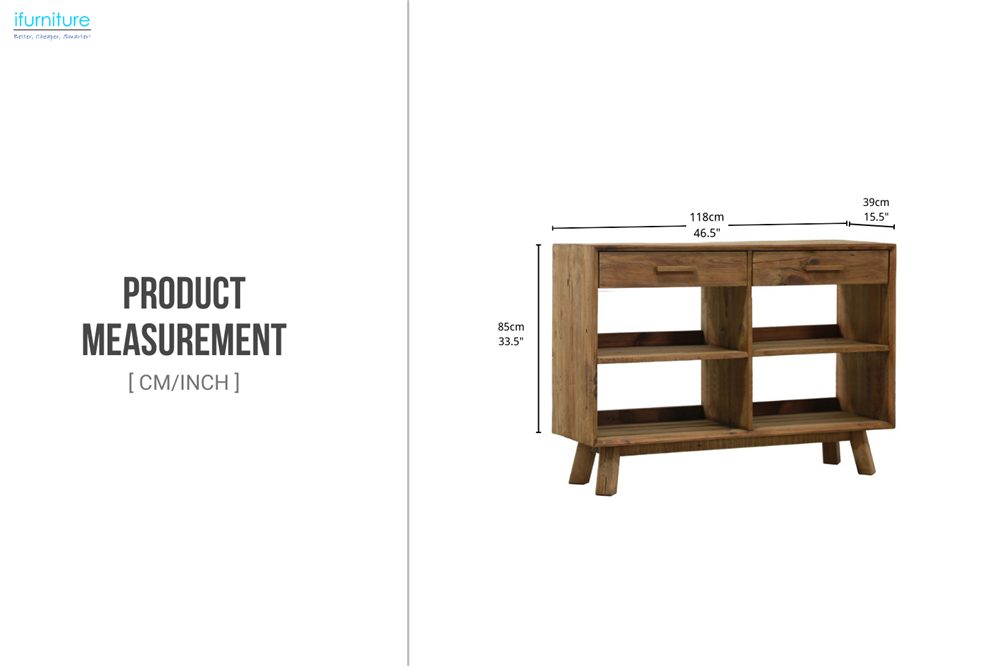 - Functional Storage: The console includes two drawers, offering concealed storage for smaller items, as well as shelves for displaying decor or storing books, making it versatile and practical.