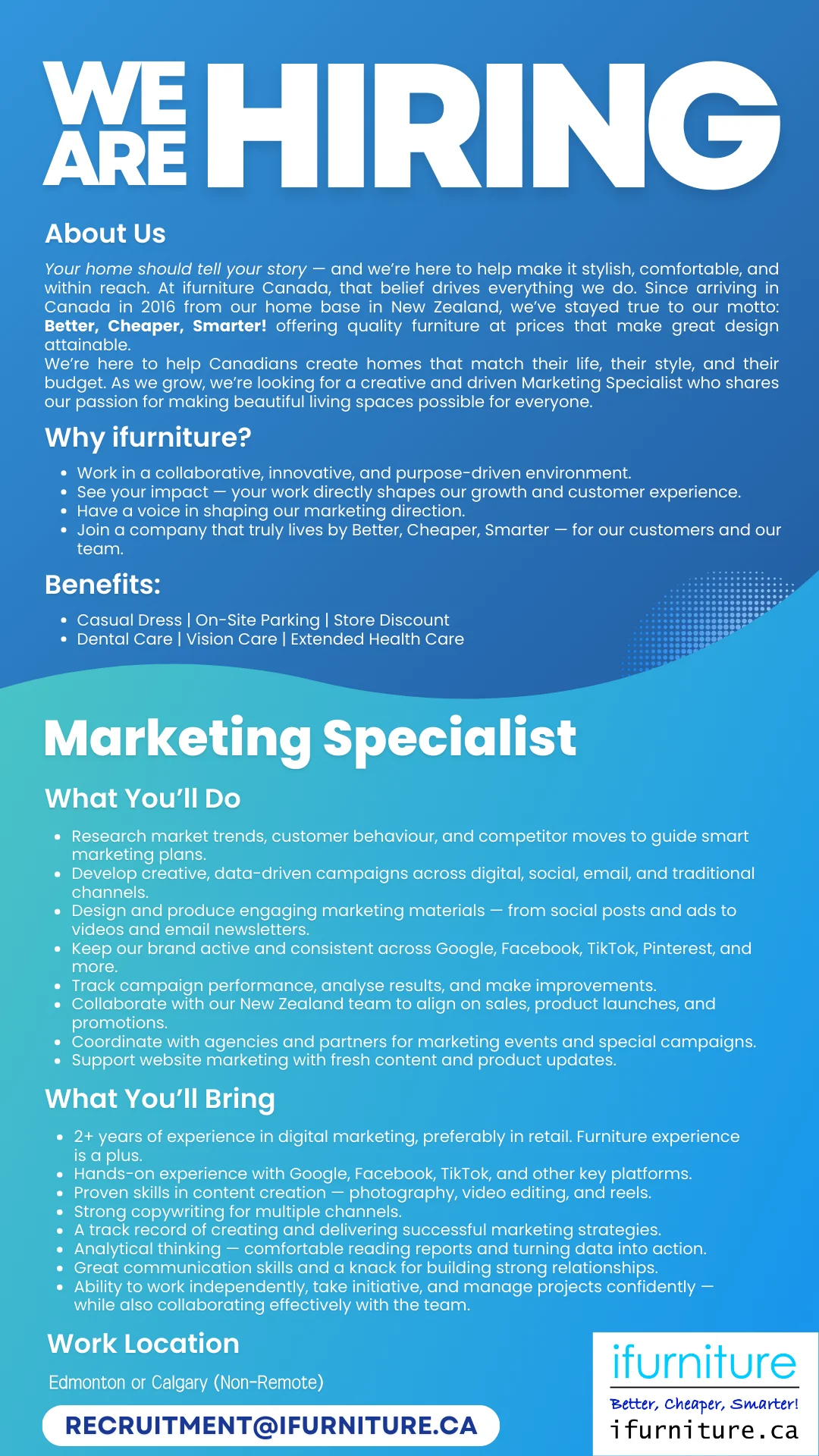 Join US-iFurniture-The largest furniture store in Edmonton, now landed in Calgary. Carry Bedroom Furniture, living room furniture,Sofa, Couch, Lounge suite, Dining Table and Chairs and Patio furniture over 1000+ products.