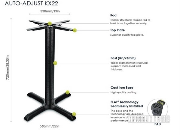 Cast Iron 22 inch cross table base from FLATTECH, the industrial award winning technology, #1 solution to wobbly tables.