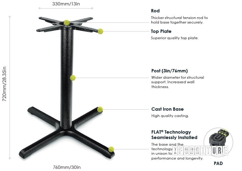 Cast Iron 30 inch cross table base from FLATTECH, the industrial award winning technology, #1 solution to wobbly tables.