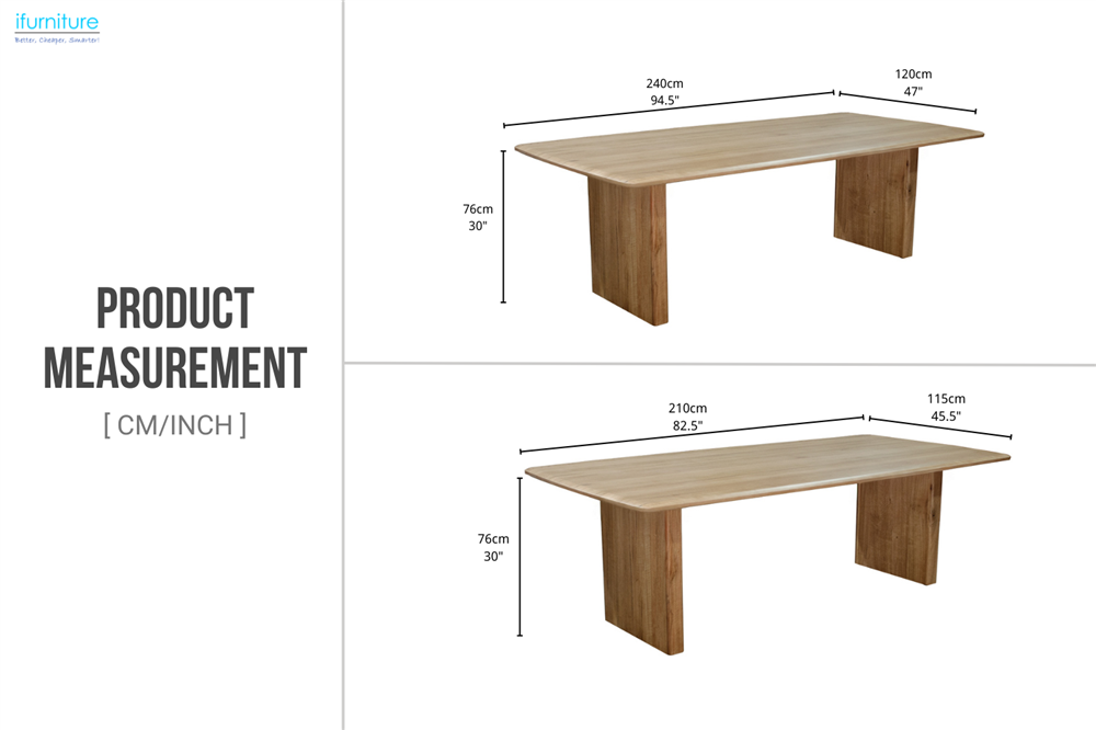 94.5" Table: 94.5 (width), 47" (depth), 30" (height)