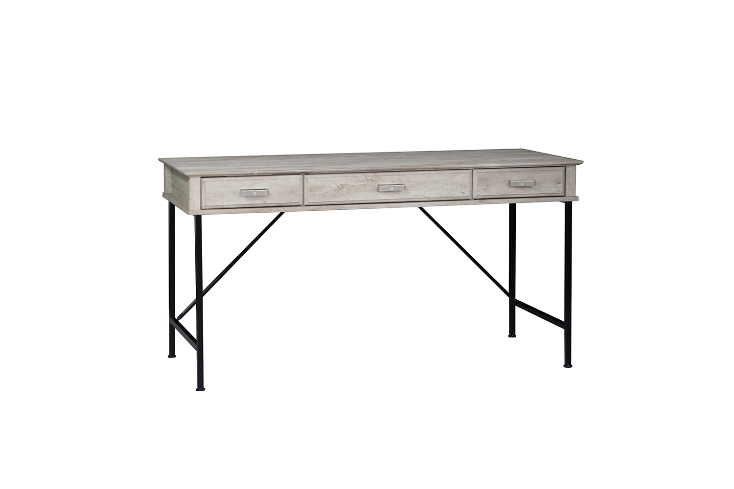 This modern desk features a light wood finish paired with durable black metal legs, offering both style and stability. With two stationary drawers and a dedicated keyboard drawer, it provides ample storage for office essentials. The spacious work surface enhances productivity, while smooth drawer operation ensures easy access. Perfect for any home or office setting.