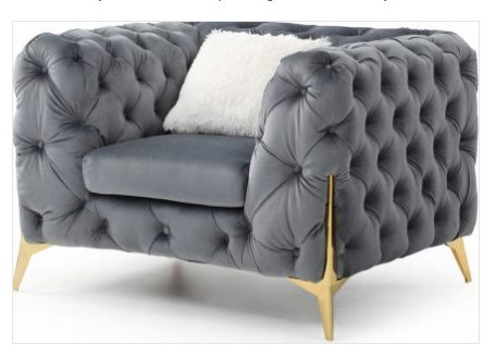 The perfect piece to reflect your regal tastes, this classic MANCHESTER classic nailhead chesterfield sofa anchors your seating ensemble in timeless appeal. This ultra-soft and comfortable large velvet chesterfield couch comes with old-fashioned scroll armrests and a pleated accent border. Premium velvet upholstery with overstuffed arms and backrests for comfort and gold metal legs. This dapper design strikes an updated, clean-lined silhouette with tight arms and gold metal feet. The velvet fabric upholstery brings out this sofa's glamorous side, while exquisite details including high-density foam fill with spring support, matching bolster pillows. The button-tufted backrest is made entirely by hand. Available in Grey, Black, and Blue.