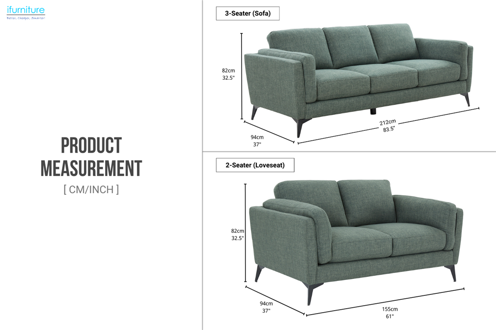 MARLOW Fabric Sofa Range (Moss Green) - Loveseat+Sofa Set