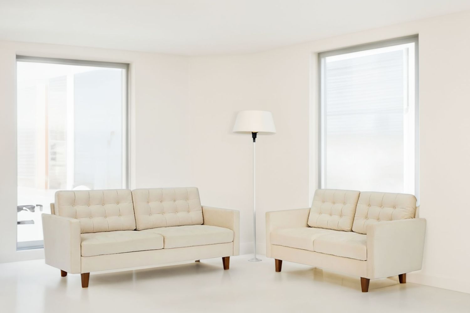 The MILIOU Sofa Set is a mix between mid-century and a refined retro style with its classic lines. It has a tufted design supported with a wooden legs. It comprises a 2 & 3 seater. It is upholstered in 9 attractive colours, each sofa has two smooth back cushions (held in place by velcro) with soft and comfy button detailing.