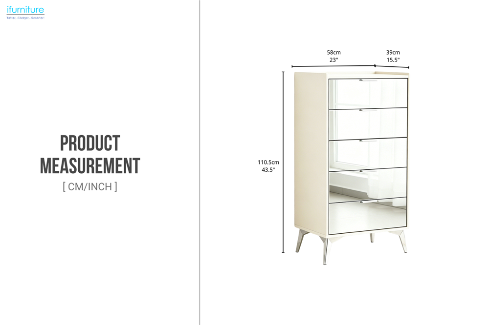 MIRORA 5-Drawer Mirrored Chest-iFurniture-The largest furniture store in Edmonton, now landed in Calgary. Carry Bedroom Furniture, living room furniture,Sofa, Couch, Lounge suite, Dining Table and Chairs and Patio furniture over 1000+ products.