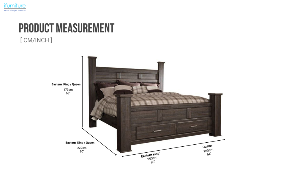 The MORNINGTON Queen/Eastern King Size Size Bed Frame with Drawers presents a durable and chic option, boasting a sturdy frame crafted from engineered wood and partially engineered wood for an elevated aesthetic. This bed frame caters to both Eastern King and Queen sizes, providing adaptability to suit various preferences. Its thoughtful incorporation of drawers offers convenient in-frame storage, augmenting its practicality. Overall, the MORNINGTON bed frame harmonizes strength, sophistication, and functionality, delivering a versatile and appealing accent to any bedroom.