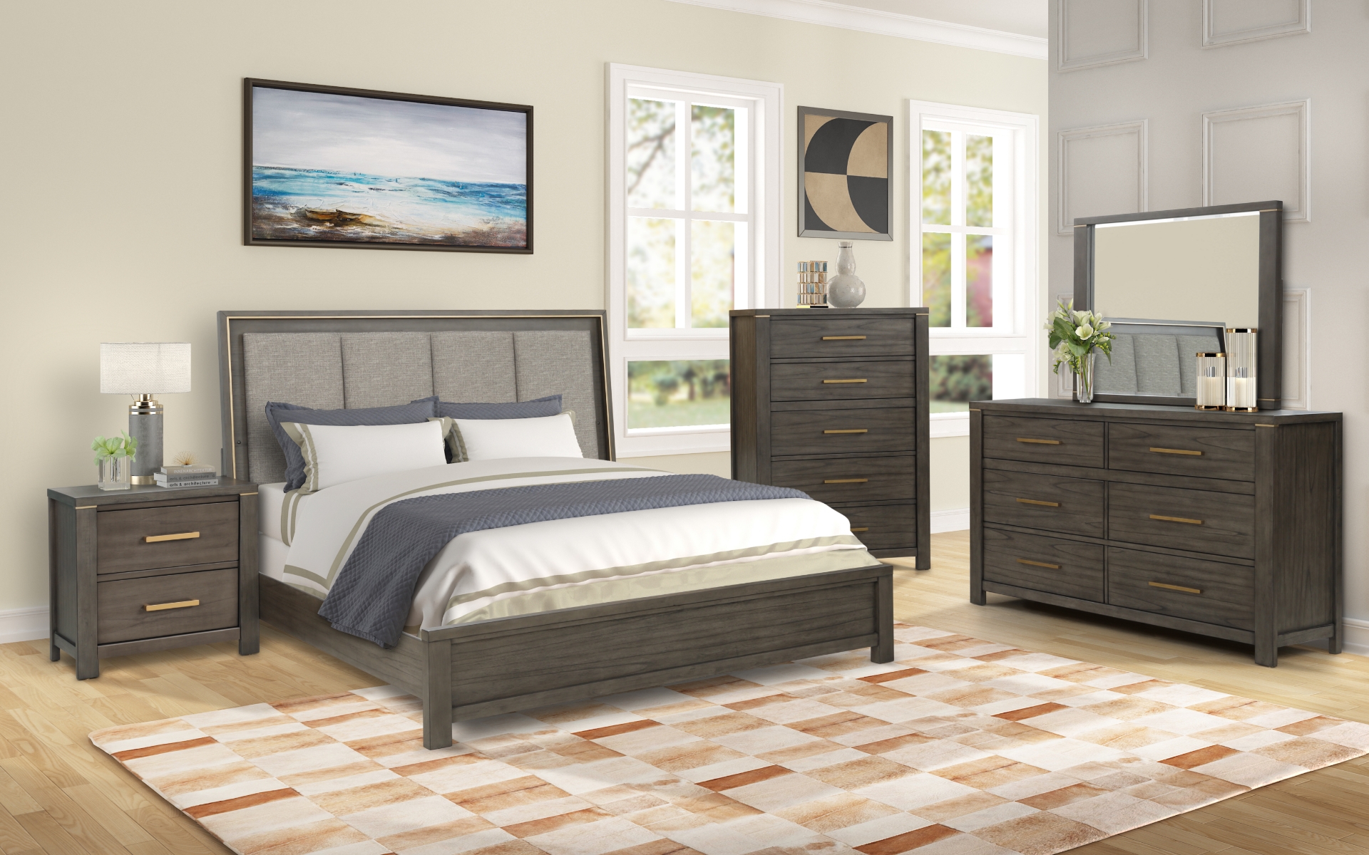• Includes bed frame, bedside table, chest, and mirror: Provides all the essential furniture in one purchase, making it easy to furnish your bedroom.