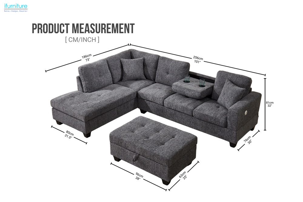 • Moveable ottoman with ample storage: Provides convenient storage space for keeping items organised and out of sight, maximising the functionality of the sofa.