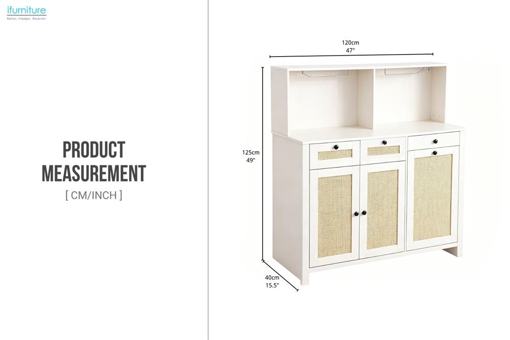 This versatile storage piece features ample space with two cabinets, open shelves for display, a built-in wine rack for up to 9 bottles, and a stemware rack for secure glassware storage. Perfect as a buffet, wine bar, or display cabinet, it fits seamlessly into your dining room, kitchen, or living area, helping you stay organized and stylish.