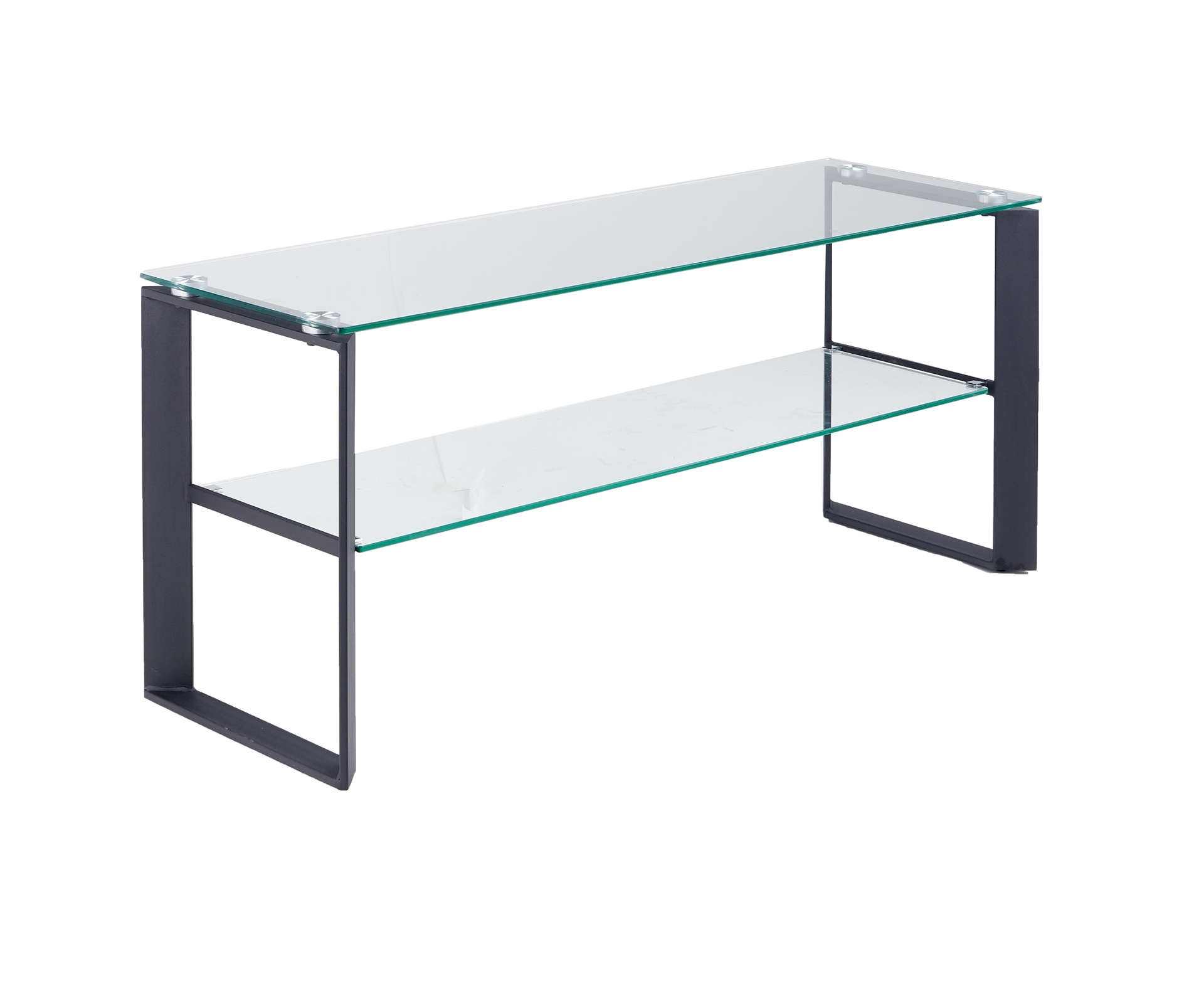 The modern flair of the Olney collection is undeniable. Set a sleek and modern foundation in your entertainment ensemble with this TV stand. The clear tempered glass top provides an easy-to-clean surface to set down meals. Assembly is required.