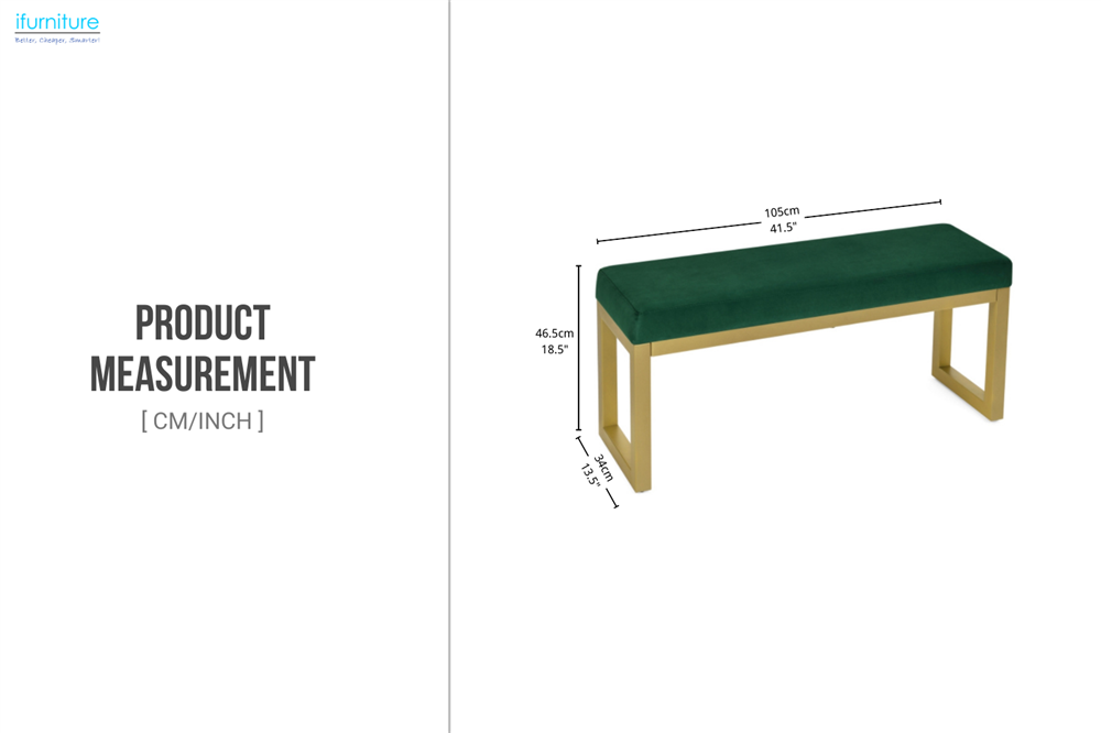 This bench combines soft fabric seating with supportive high-density foam for everyday comfort. The sleek golden-tone metal open frame provides stable support while adding a refined, modern touch. Designed for versatility, it fits effortlessly in entryways, bedrooms, living rooms, or at the foot of a bed, offering both practical seating and elevated style.