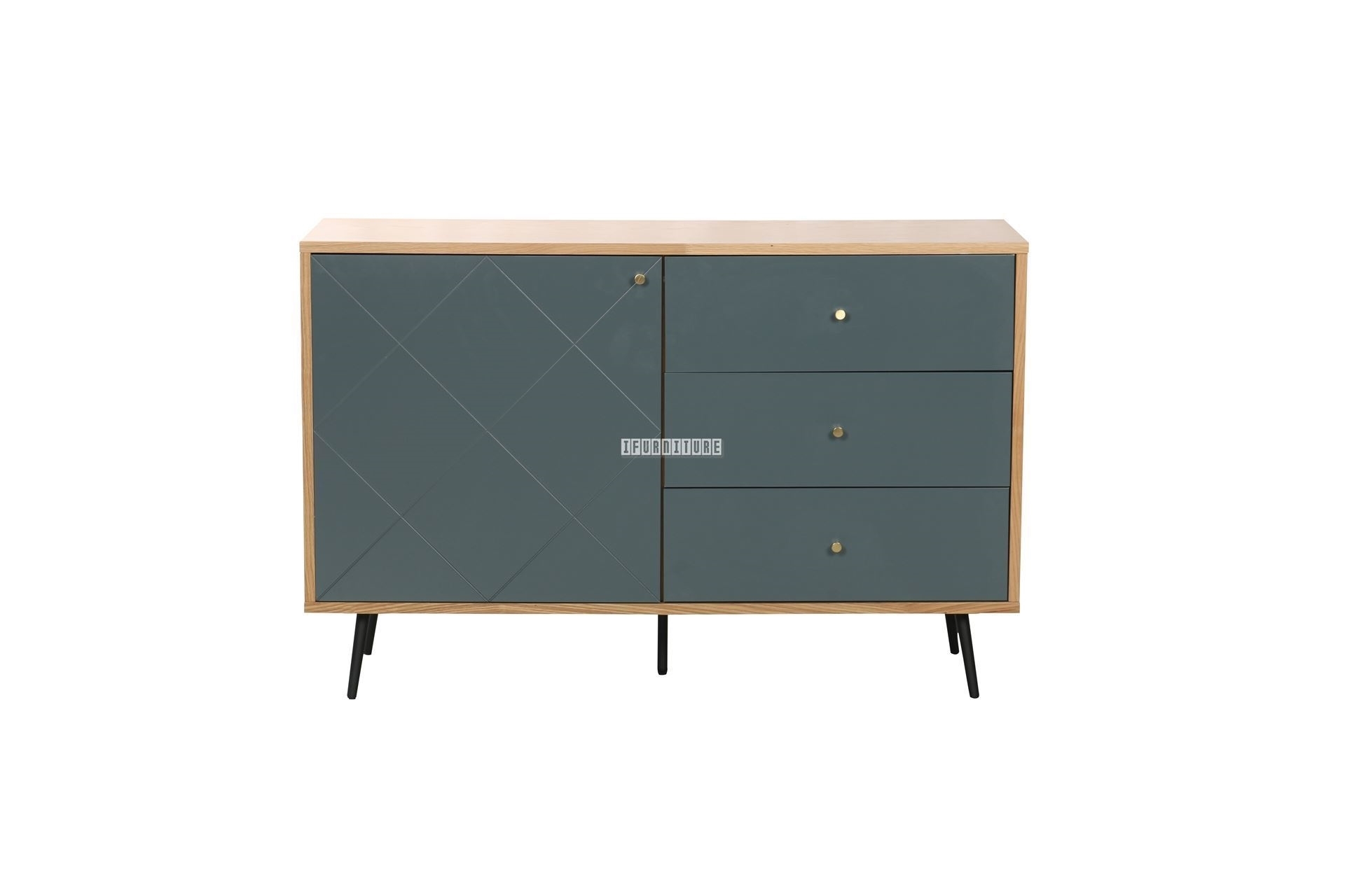 Modern and industrial design with a simple and stylish touch. RIO series has been given a new design expression. Both the design and color combination are new compliments in the DFA range. The sideboard and cabinet come with open compartments perfect to store beautiful things that make your interior design more personal. The oak/walnut veneer gives the furniture a modern feeling and the matte anthracite lacquered fronts enhance this appearance. The inclusion of the metal legs gives the furniture an industrial touch.