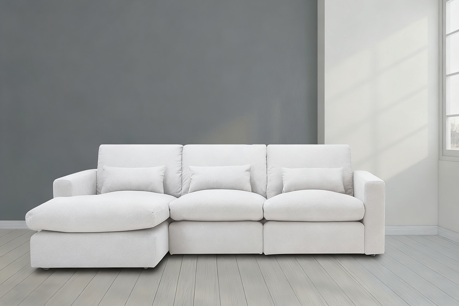 Love the way you lounge with the SIGNATURE contemporary modular sofa. This cloud-like modular sofa can be configured in any shape and space. The cushion provides a plush seating experience, supported by sinuous springs. The performance fabric is made with stain-resistant technology, features moisture repellent and barrier protection that safeguards your sofa all the way through. The durability of the fabric keeps your furniture looking and feeling as beautiful as the day you brought it home.
