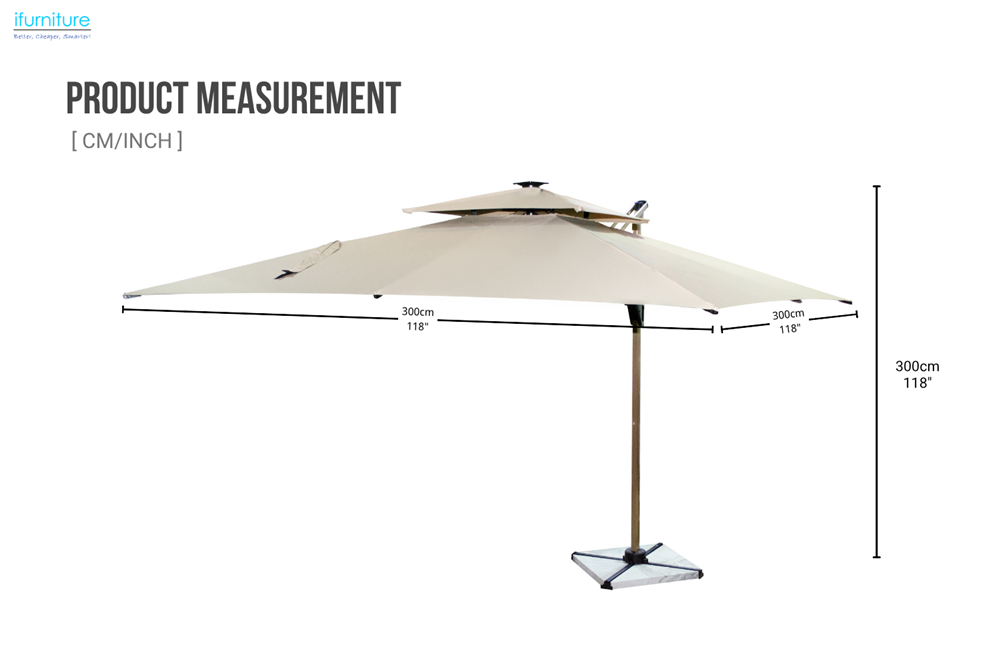 SOLARIS 118"×118" Crank Open 360° Rotation Cantilever Umbrella With Solar LED Lights & Ground Anchor-iFurniture-The largest furniture store in Edmonton, now landed in Calgary. Carry Bedroom Furniture, living room furniture,Sofa, Couch, Lounge suite, Dining Table and Chairs and Patio furniture over 1000+ products.