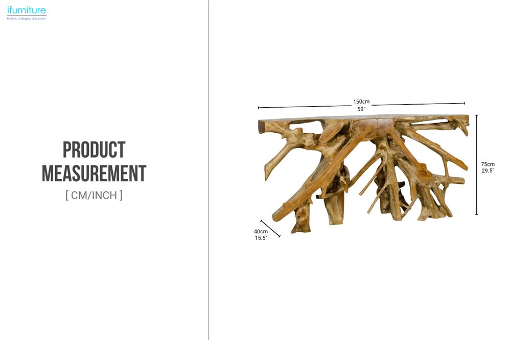 Solid Teak Root Construction: Crafted from natural teak root for exceptional durability and organic beauty.