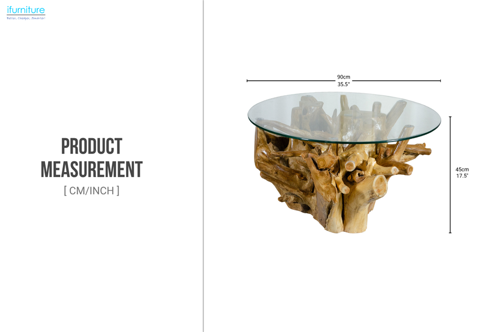 Takara D35.5" Tempered Glass Top Handcrafted Teak Root Coffee Table-iFurniture-The largest furniture store in Edmonton, now landed in Calgary. Carry Bedroom Furniture, living room furniture,Sofa, Couch, Lounge suite, Dining Table and Chairs and Patio furniture over 1000+ products.