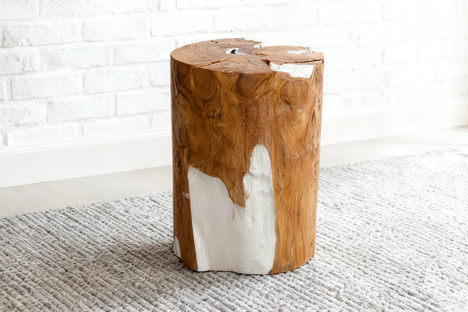 Crafted from premium teak root, the Takara Solid Teak Cylindrical Stool is a stunning and functional addition to any space. Its unique organic shape and solid construction make it perfect as a statement piece in both modern and rustic interiors. This stool brings natural beauty and versatility to your living room, bedroom, or entryway.