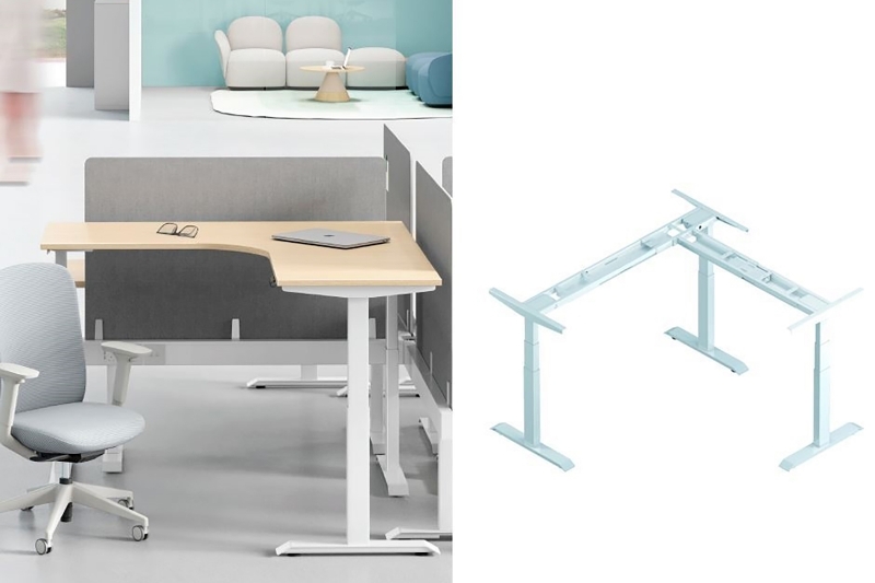 UP1’s L shape desk system with 2 colors and 2 adjustable height options.