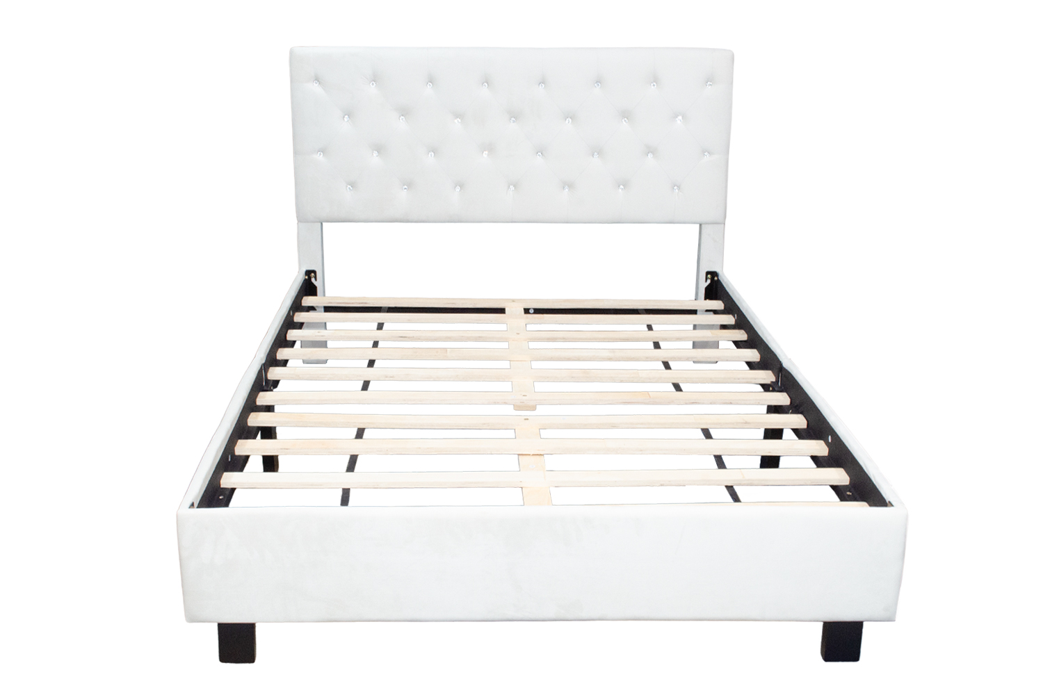 Designed for modern living, this upholstered bed frame combines foam-padded comfort with reliable wooden slat support. The softly tufted headboard and clean lines deliver a refined, minimalist look suitable for a wide range of bedrooms.