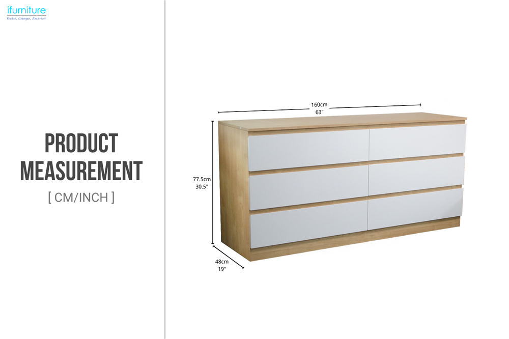YORU 63" 6-Drawer Dresser (Oak & White)-iFurniture-The largest furniture store in Edmonton, now landed in Calgary. Carry Bedroom Furniture, living room furniture,Sofa, Couch, Lounge suite, Dining Table and Chairs and Patio furniture over 1000+ products.