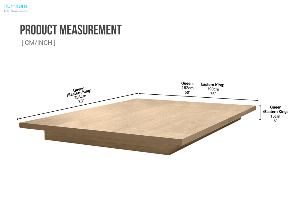 Introducing the YUKI Japanese Bed Base in Queen/ Eastern King Size – a marriage of contemporary design and durability. Crafted from engineered wood with melamine on both sides, it boasts a 48mm hollow core board bed panel for sturdiness. The 18mm bottom frame, also with melamine finishing and PVC edging, ensures lasting quality. With a stable flat platform, this bed frame provides both security and comfort, while its low height adds a modern aesthetic touch to any bedroom. The meticulous construction guarantees a seamless and polished appearance. Enjoy a minimalist and sophisticated look with the YUKI Japanese Bed Base, where form meets function seamlessly. Elevate your bedroom experience with this stylish and reliable platform for restful nights.